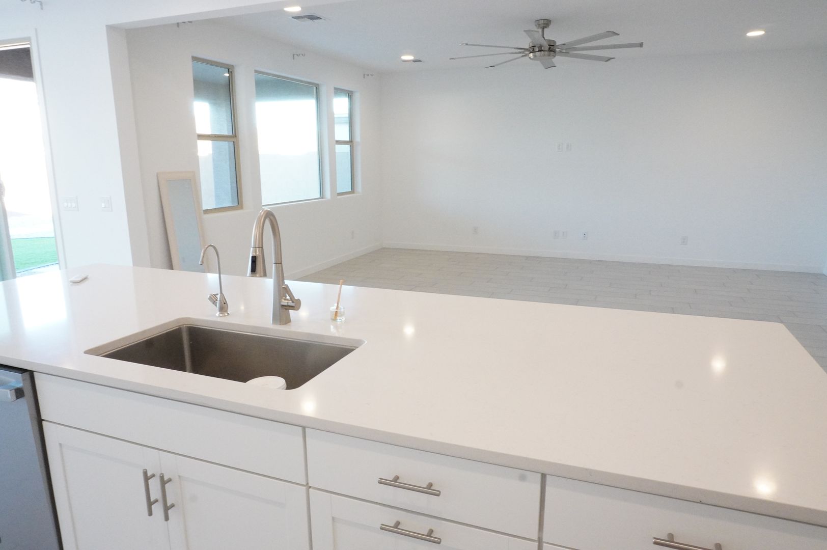 Welcome to the beautiful new 3-bedroom house in Rancho El Dorado in Maricopa, AZ. This upgraded property offers a modern, open floor plan that is perfect for entertaining. The kitchen is a chef's dream, boasting a large island with a stunning quartz countertop. The oversized pantry provides ample storage space for all your culinary needs. The primary bedroom features a generously sized closet, perfect for those who value organization and space. Step outside to a beautifully landscaped backyard, complete with pavers and synthetic grass, offering a low-maintenance outdoor space for relaxation or social gatherings. This house is not just a rental, it's a lifestyle upgrade. Experience the best of Maricopa living in this stunning new home.