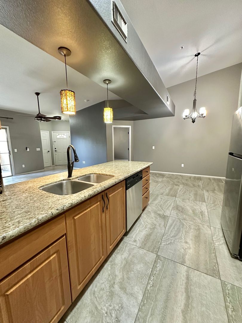This beautifully updated 2-bedroom, 2-bath condo in Coyote Landing Complex Mesa, AZ offers comfortable, modern living with fresh paint and an included washer and dryer. The unit comes with all appliances and opens to a private balcony. Located in a gated community, residents have access to on-site amenities including a pool, gym, community center, and community park. A detached garage/workshop provides extra storage and workspace. Ideal for those seeking a move-in ready home with convenient community features.